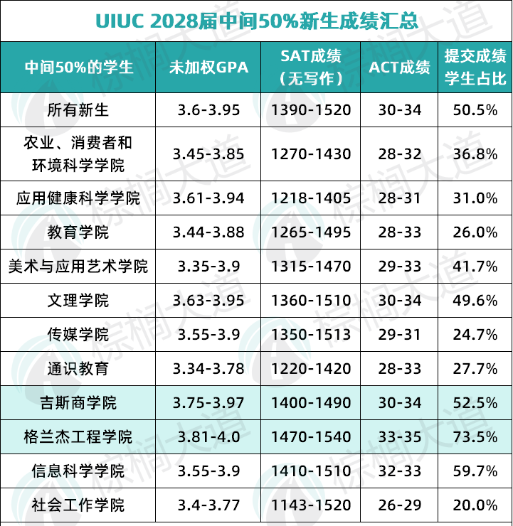 据官方最新公布的不同学院新生录取背景,农业、消费者和环境科学学院,教育学院,美术与应用艺术学院,通识教育,社会工作学院对GPA都很友好,都录取了低于3.5分的学生。此外,UIUC虽然不允许校内转工程或CS,但提供了很多CS+X跨学科学位课程,含金量也很高,非常值得选。