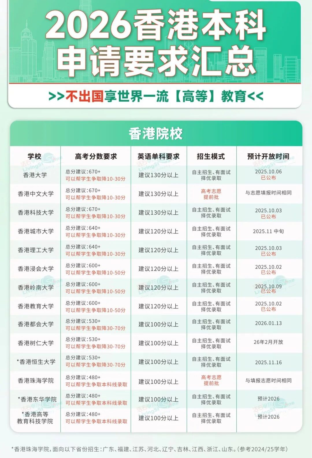 温馨提示:香港本科申请已经开放,多所大学已经官宣申请开放和截止时间。早轮必抢,可降分录取!