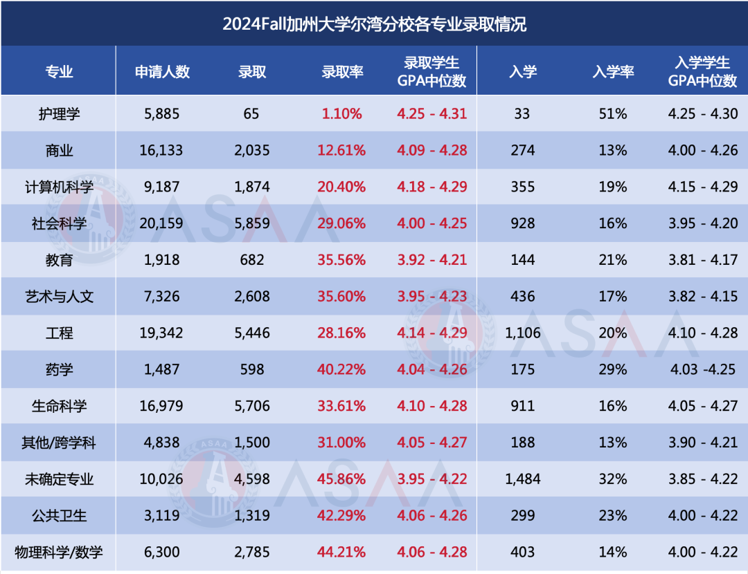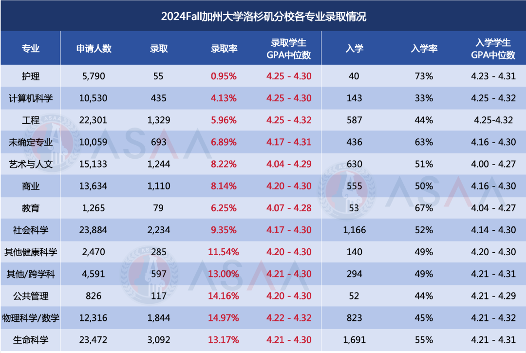 UCI的录取GPA中位数都是在4.0以上。护理专业的录取和入学数据甚至比UCLA还高。