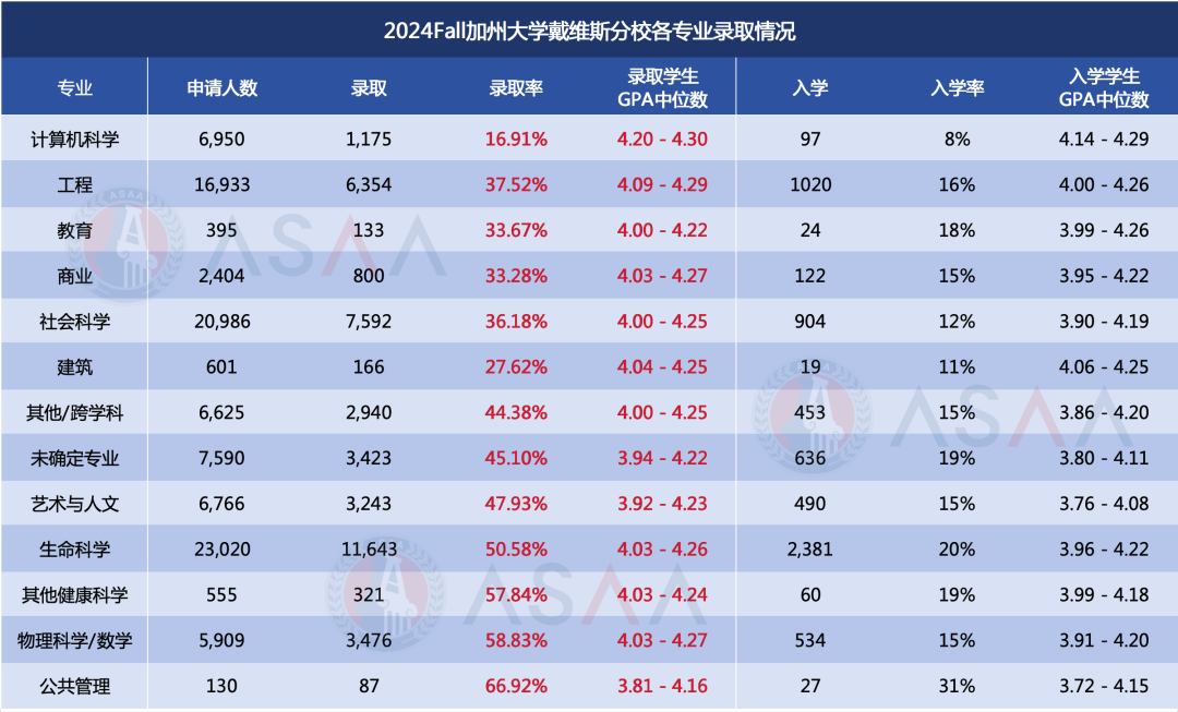 毫无意外,以“农校”著称的UCD,其生命科学自然成为其最受欢迎的专业,不过其录取率倒是相对友好,在50%以上。