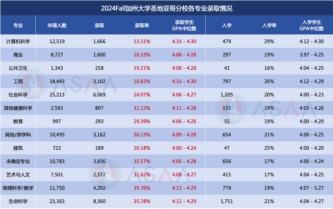UCSD不定专业录取率还是相对比较高的,接近30%,同学们可以酌情选择。