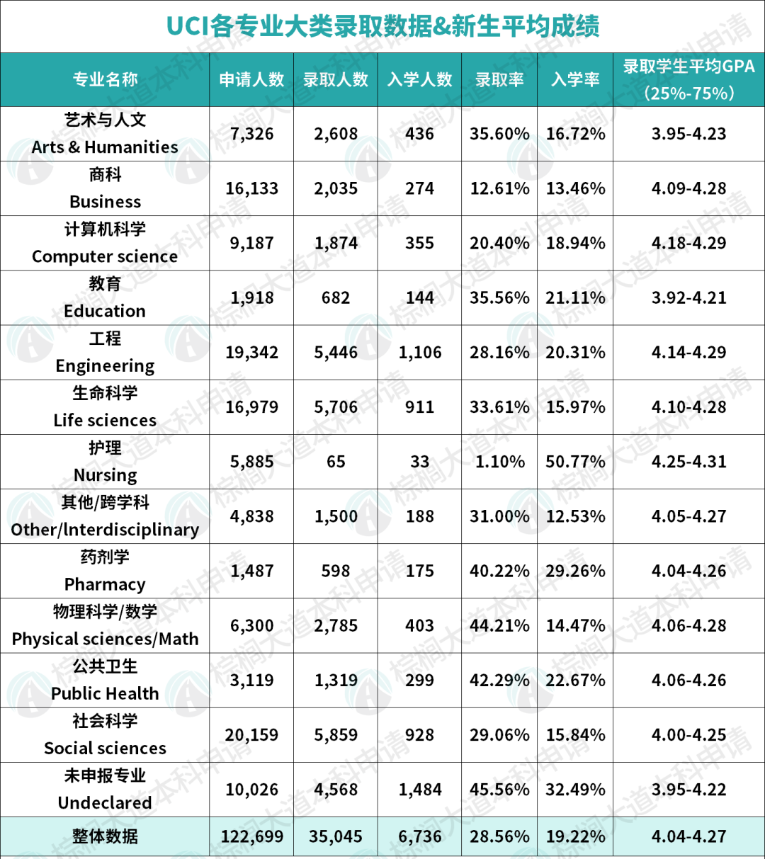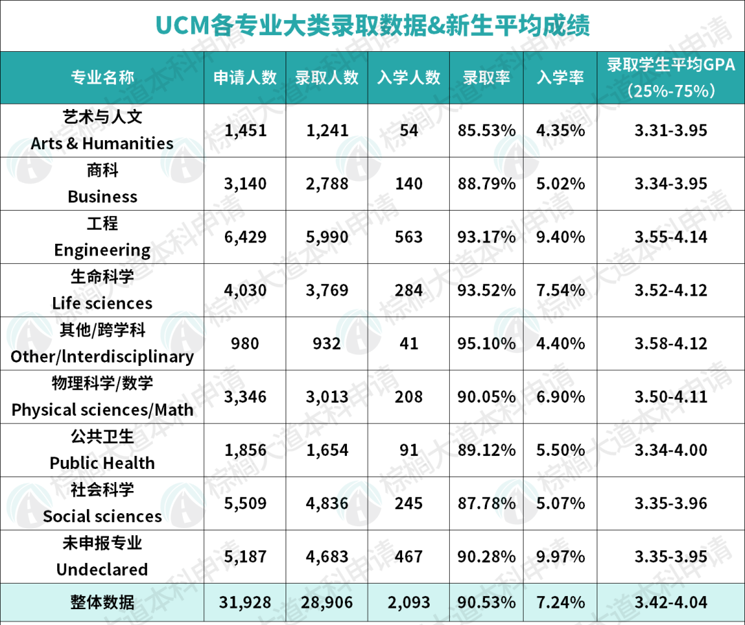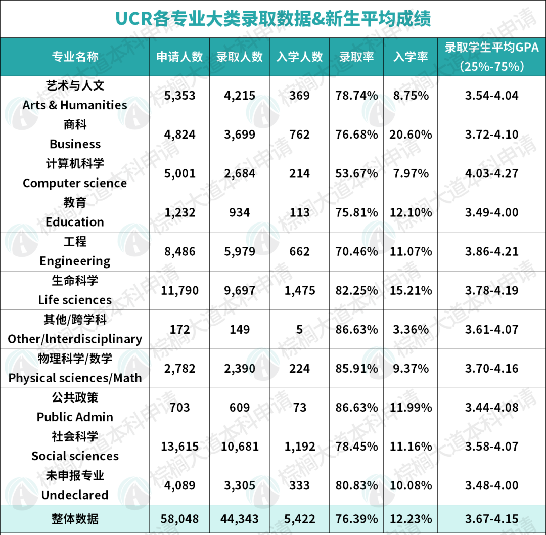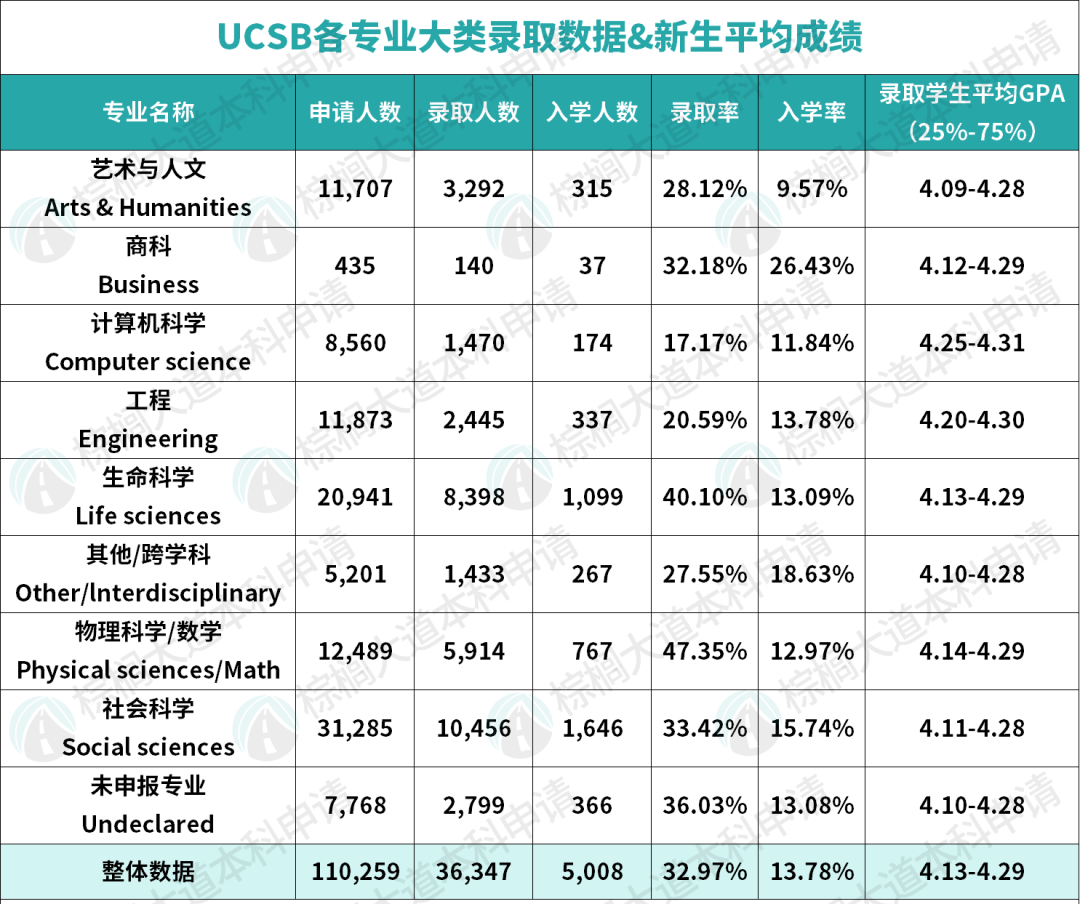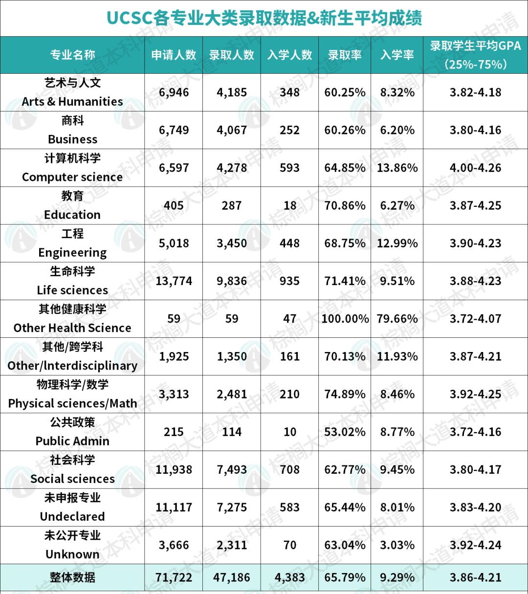 话不多说,老师这就结合官网数据,为大家详细介绍UC系专业录取情况及申请注意事项!