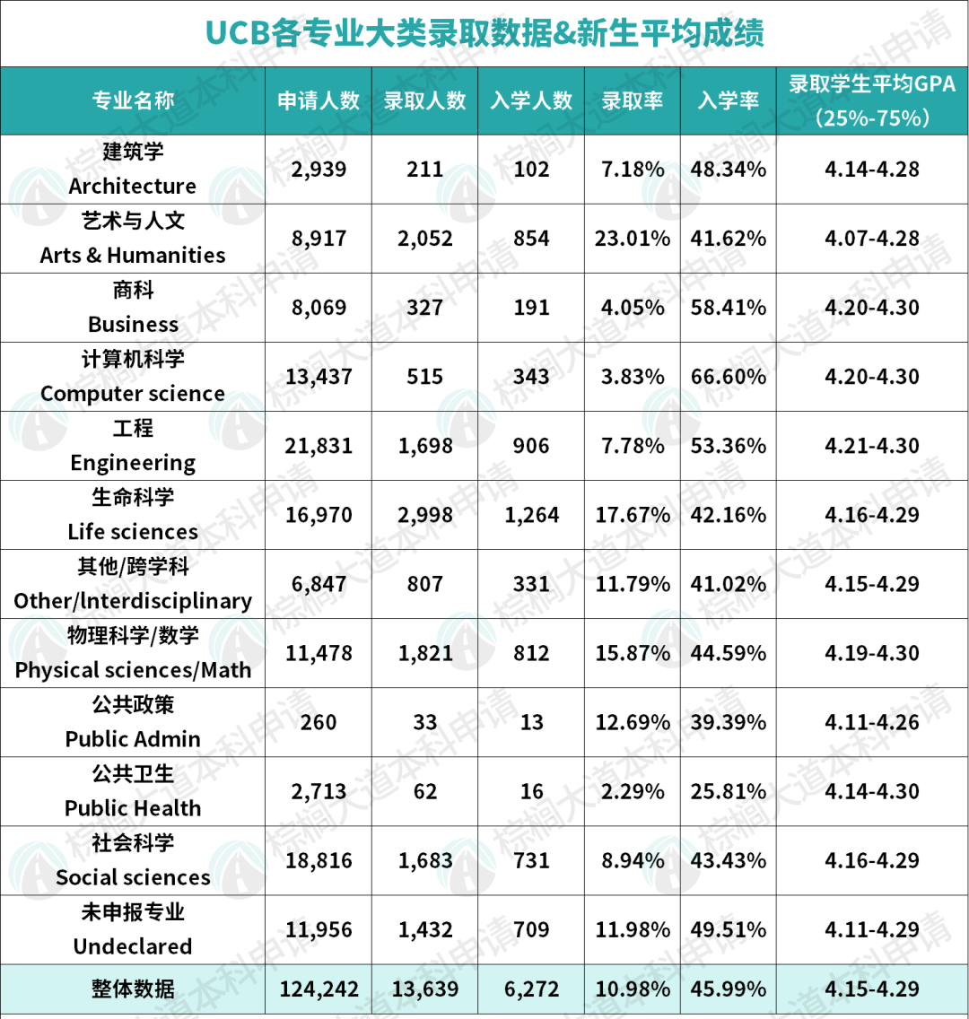 向来录取严格的“UC老大哥”伯克利,不同专业差距竟能达到10倍!其中: