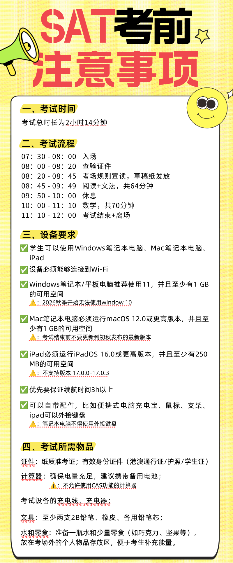 ⚠️注意:考生在考试中(包括休息时间)使用上述违禁物品,将被视作违规,立即请出考场并取消成绩,违规设备可能会被没收检查。