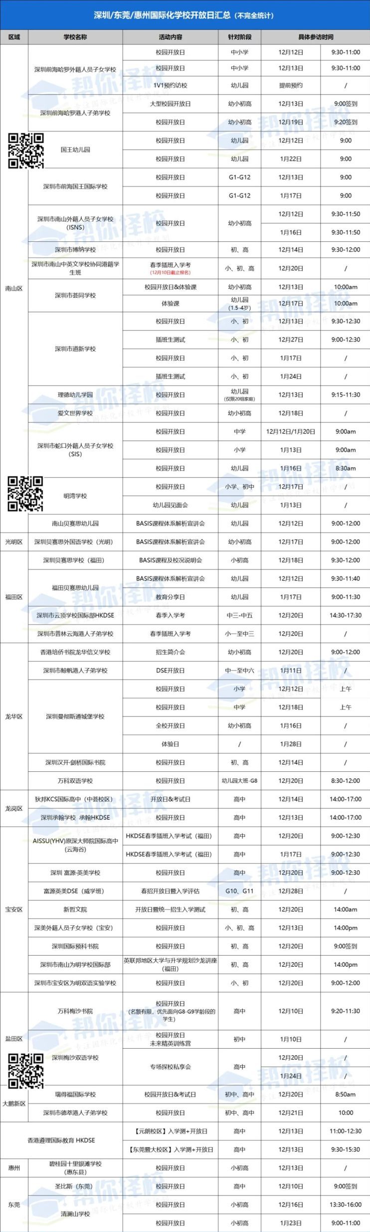 老师已整理好近期深圳双语 / 国际化学校开放日信息,可直接扫码预约探校~