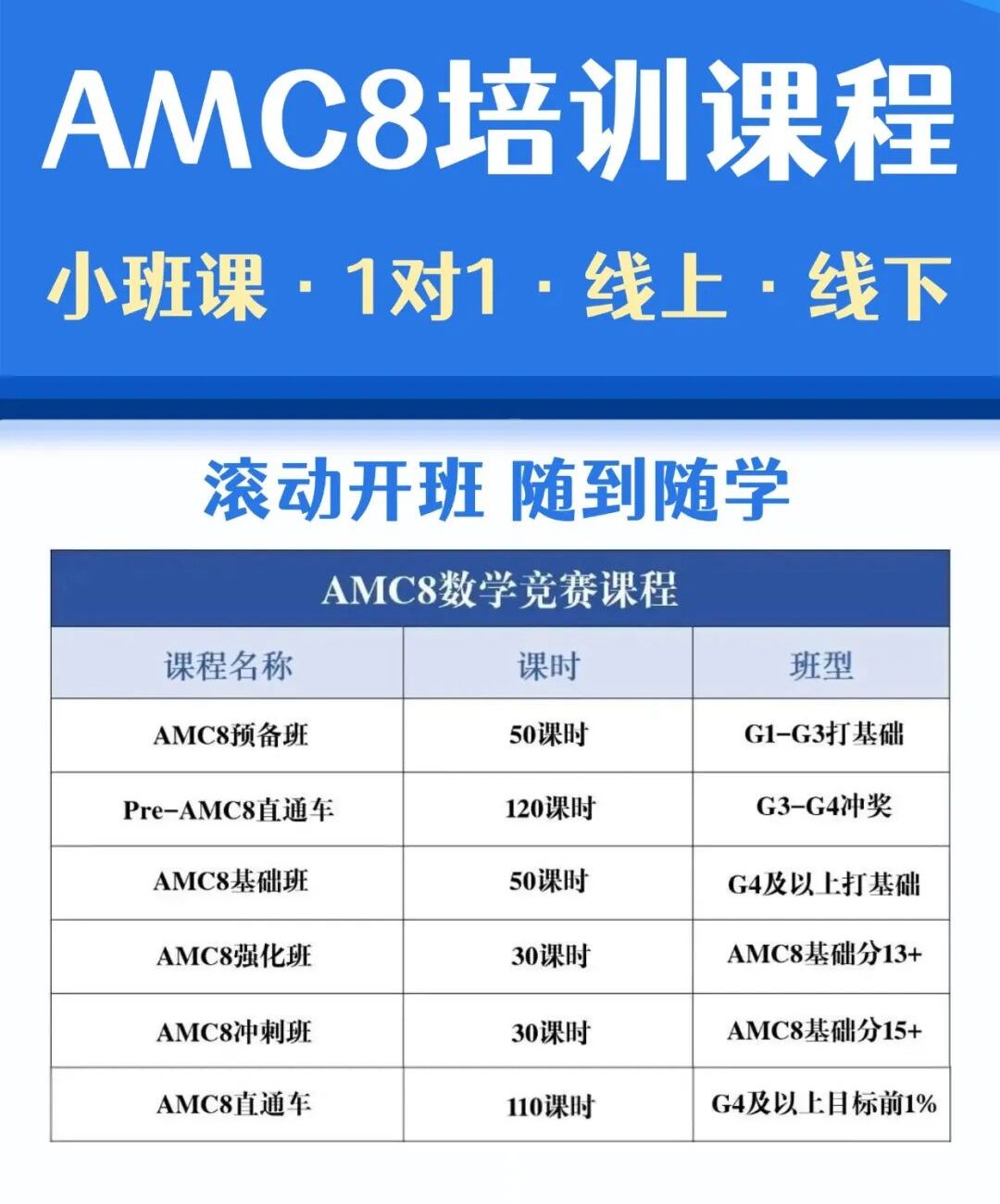 机构AMC8课程,由经验丰富的老师全程引导,旨在帮助孩子们在备考中实现扎实成长与能力突破,用专业教学护航每一步👇