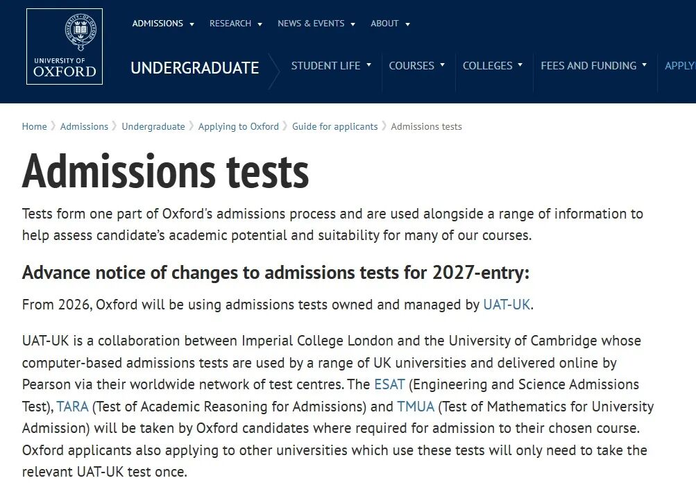 像ESAT/TARA/TMUA,分别重点考工程科学、学术推理、数学这些核心能力,和牛津真正看重的学术潜力更匹配。