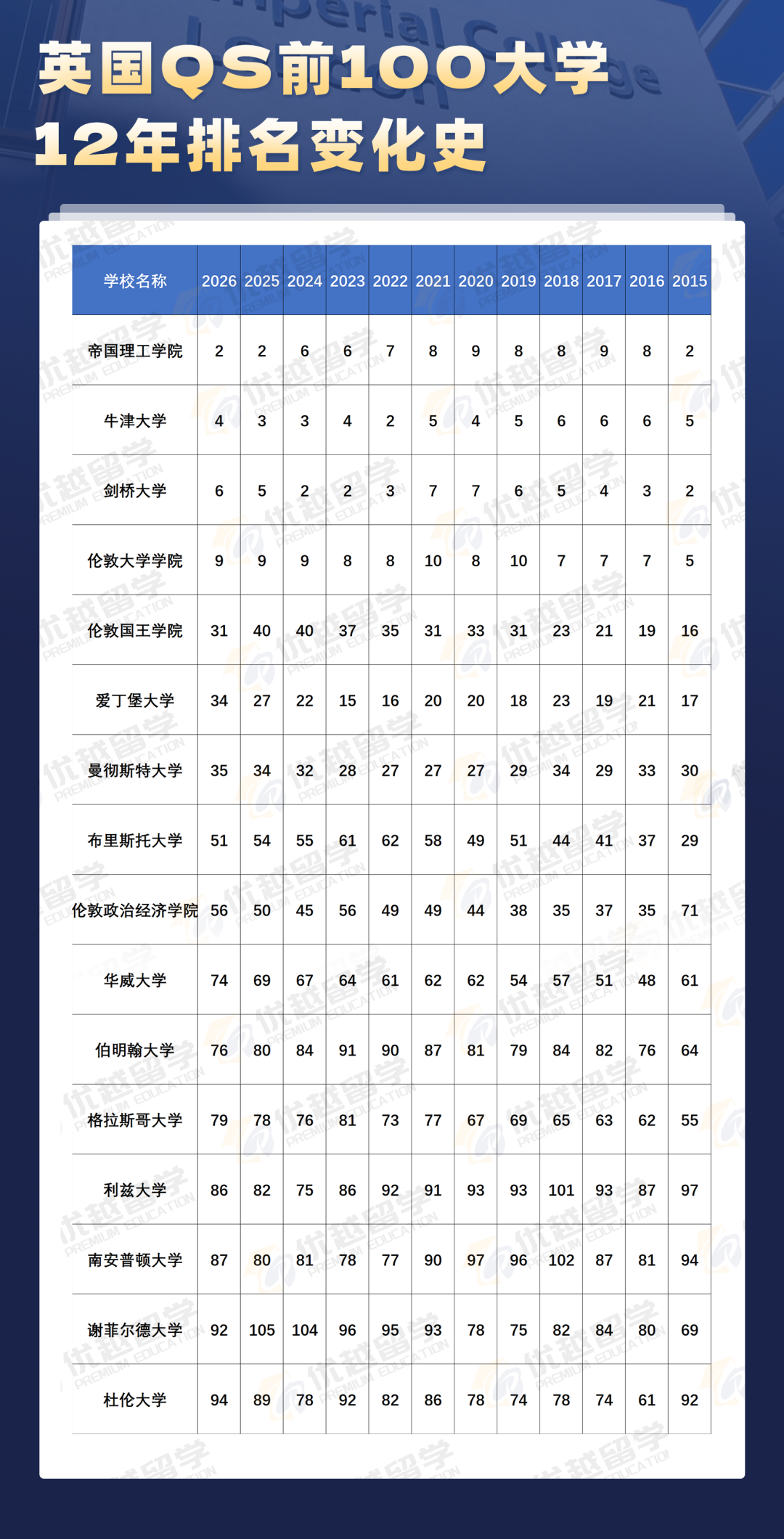 这12年里,英国前100院校中,有人稳如泰山,有人大起大落,有人悄无声息被时代甩在身后。