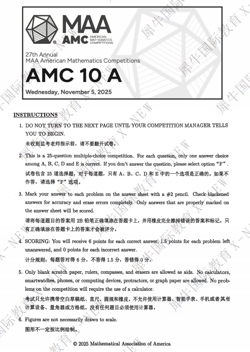 但和国内数学考试不一样的是,AMC10数学竞赛不刻意深挖知识点的难度,反而更看重能不能灵活运用知识,还有能不能把不同模块的知识结合起来用——比如把几何图形和代数方程掺在一起考,或者用数论的思路解决实际问题。