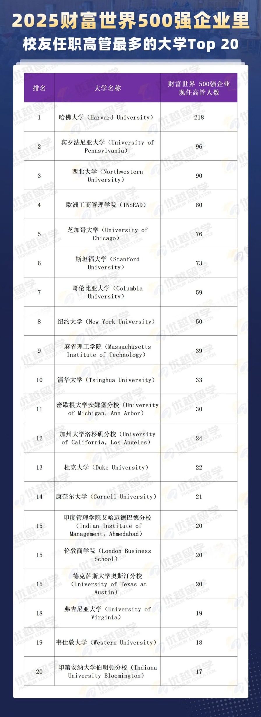 美国数据咨询机构Altrata公布了“2025MBA校友在财富世界500强企业担任高管最多的大学”。