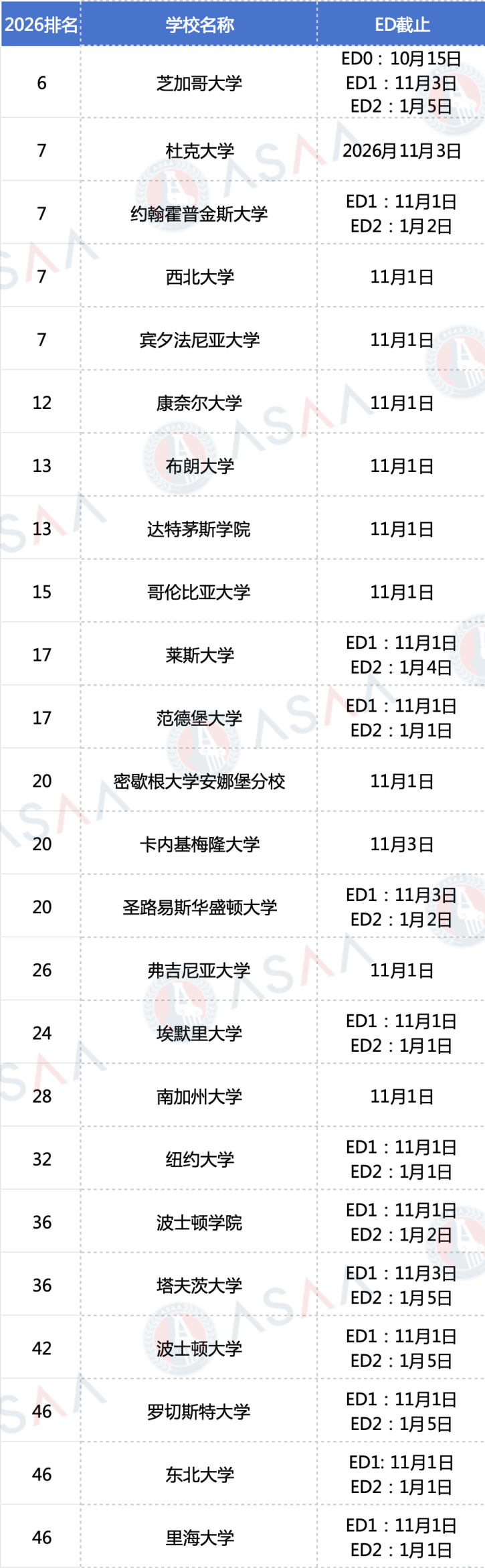 全美排名前50的院校,共有25所院校开设了ED轮次。