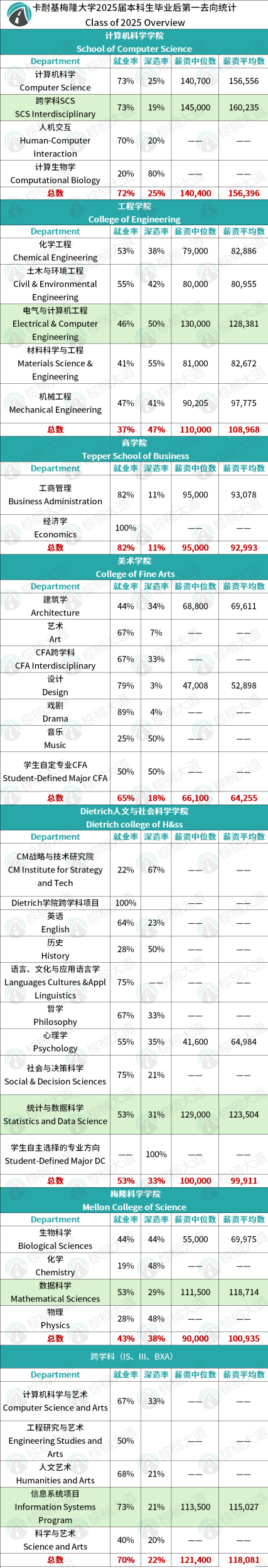 CMU官网显示,2025年毕业的本科生中,60%成功就业,31%继续读研。就业的本科生平均年薪达到116,882美元。