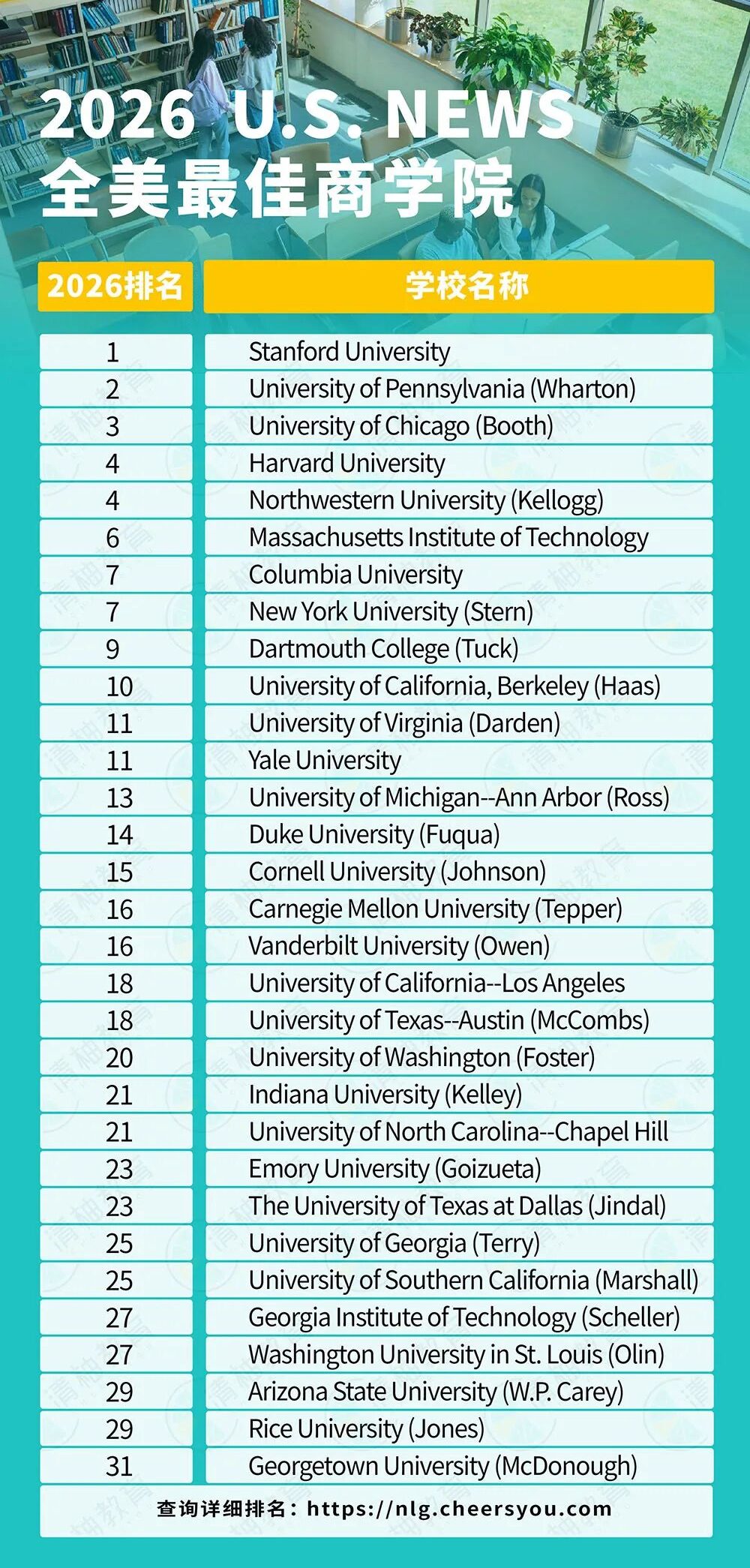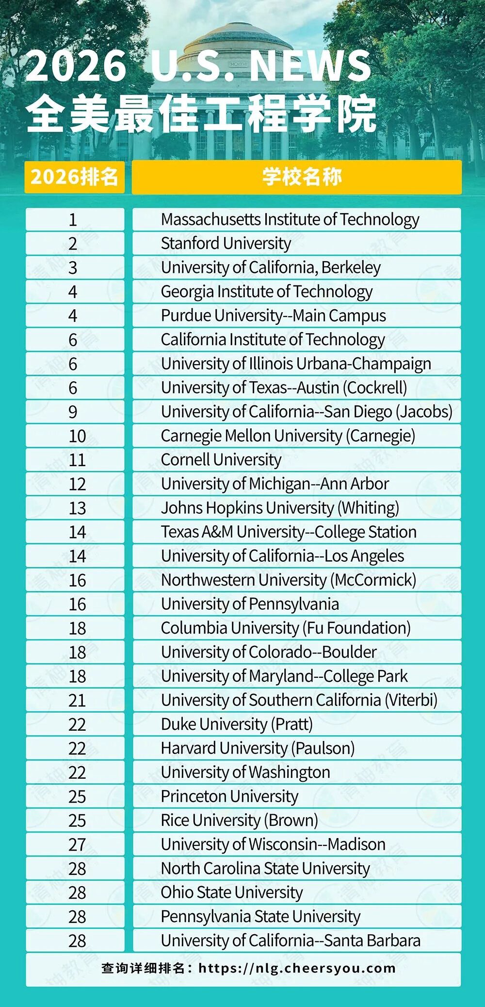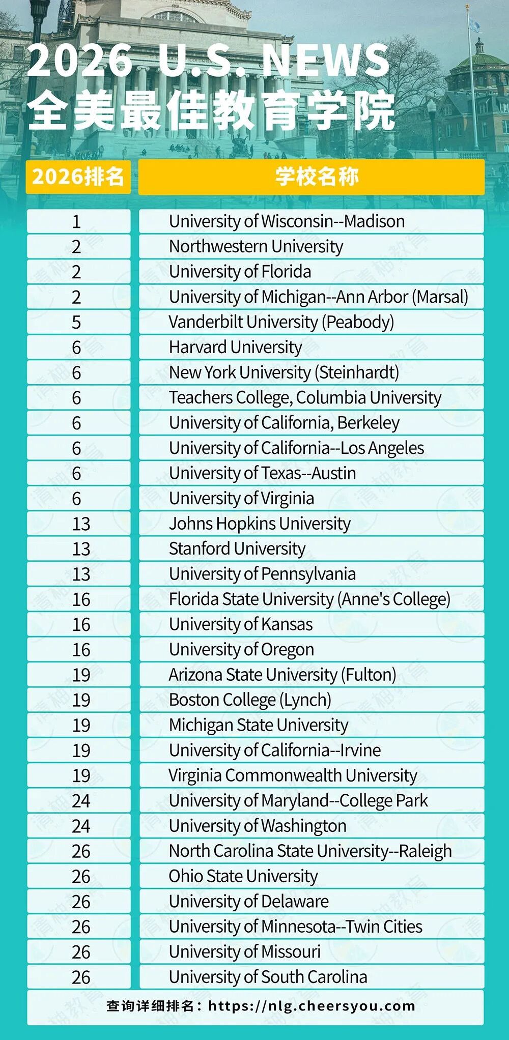 更多排名信息可以到U.S News或机构官网查看: