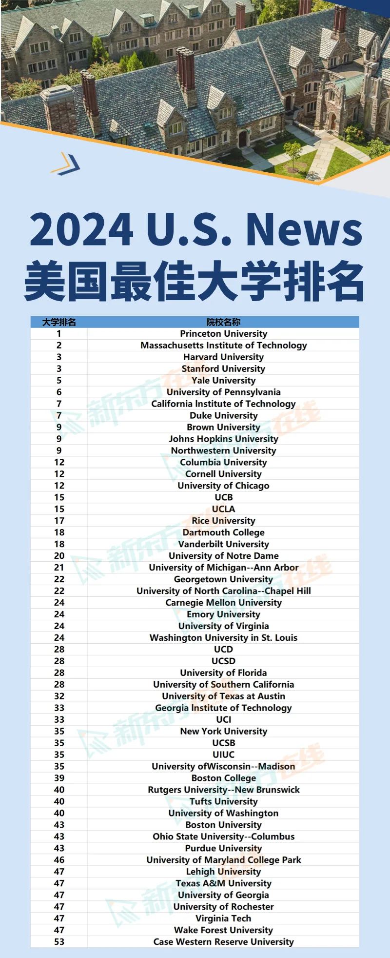 就在刚刚,U.S. News & World Report《美国新闻与世界报道》(以下简称U.S. News)正式发布了最新的2024全美最佳综合大学排名(2024 Best Colleges Ranking)。