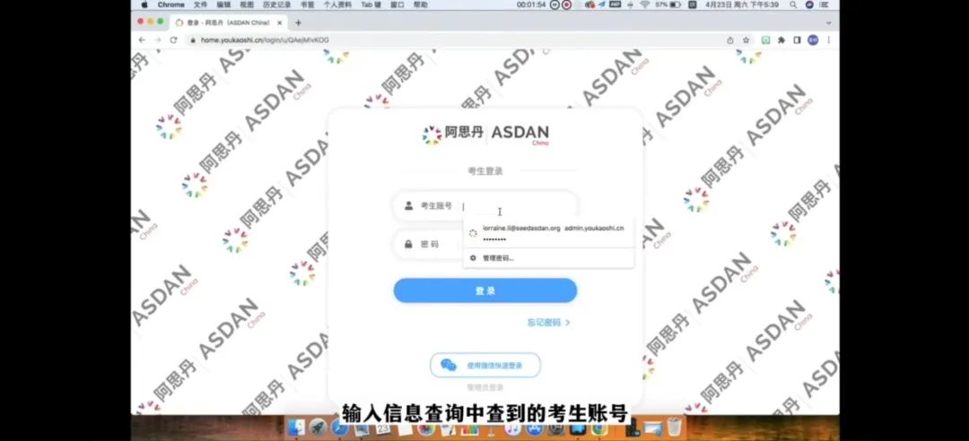 ①信息查询及确认(查看考生账号和登录密码、ZOOM会议号和密码等)模考与正式考试的考生账号和登录密码一致。