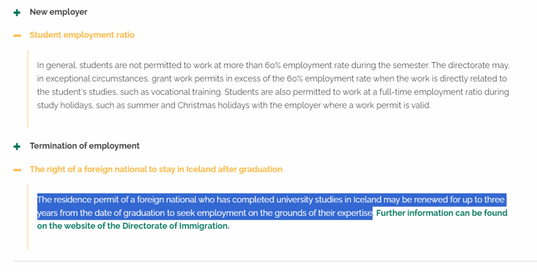 另外,在留学生工作签证政策方面也相对友好。非欧盟学生在完成学业后可以续签居留许可(最长三年),以获得更多的时间和机会在冰岛寻找就业机会。