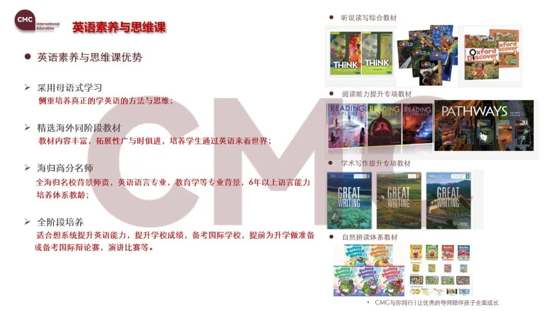 CMC能力提升课程适合想系统提升英语能力,提升学校成绩,备考国际学校,提前为升学做准备或备考国际辩论赛,演讲比赛等的学生。