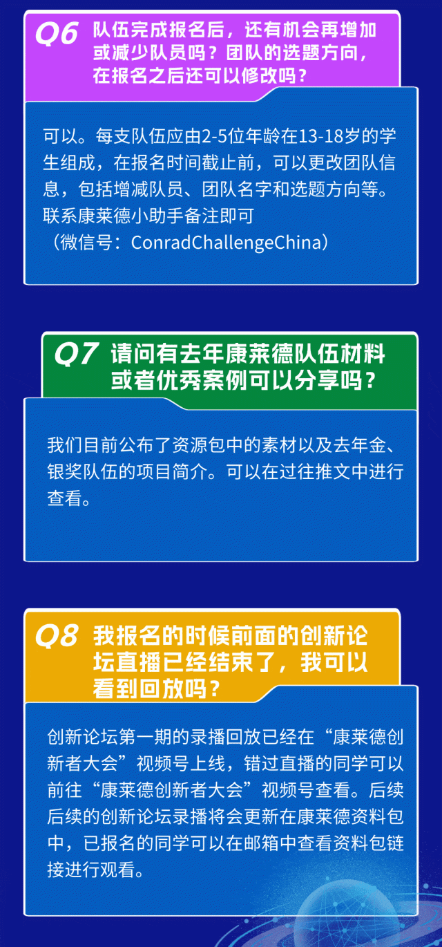 25-26康莱德中国站常规报名火热进行中 FAQ更多你想了解的问题答案都在这里! 2025-11-14 32 预计阅读需要0分钟 【竞赛报名/项目咨询+微信:mollywei007】 本文由 Molly 转载发布在 国际教育联盟平台,版权归原作者所有,如有侵权,请直接联系微信进行处理。