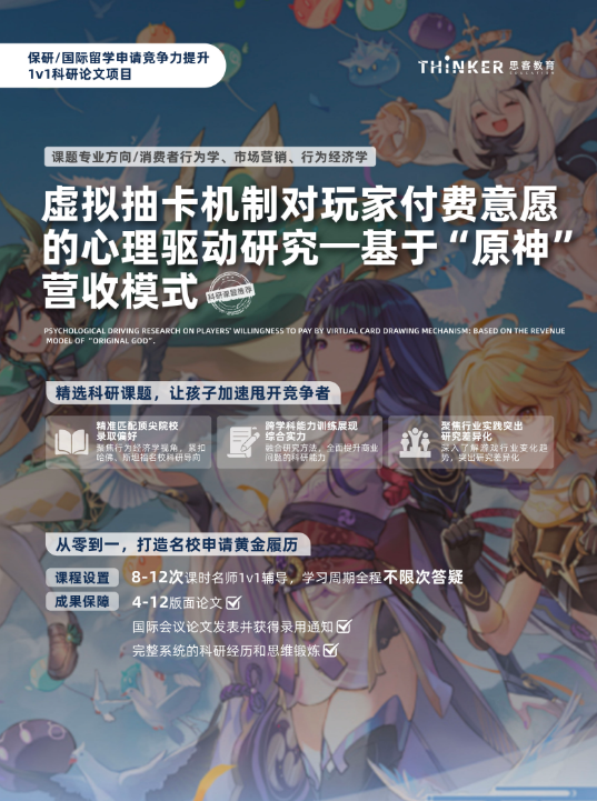 项目收获:由双一流名校导师针对学员个人背景和兴趣,量身定制学术提升计划,培养学生扎实的学术素养。一篇独作论文、国际会议论文发表并获 得录用通知、完整充实的科研经历。