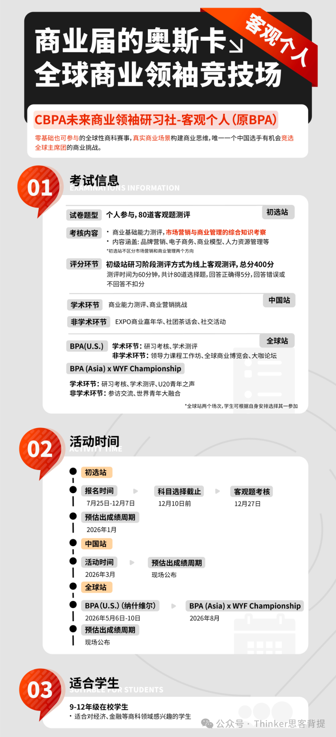 BPA是唯一为中国开设线上全球站的国际商科学术活动。BPA竞赛属于商科类比赛,围绕真实商业案例、商科知识测评展开活动。